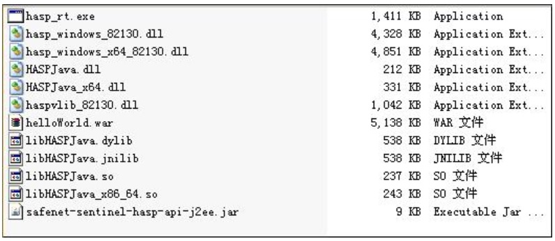 war 包加密后,產(chǎn)生的文件相對較少,此處只需要將原來移出的 jar 包和.class 文件重新加入,部署時(shí)將 safenet-sentinel-hasp-api-j2ee.jar 放入$CATALINA_HOME/lib 目錄下。