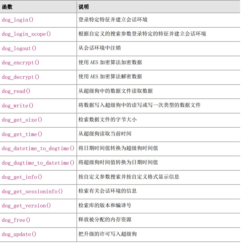 超級(jí)狗常用API函數(shù)列表