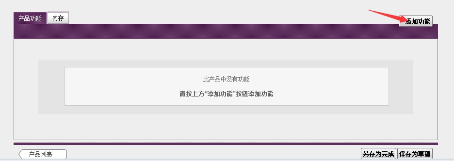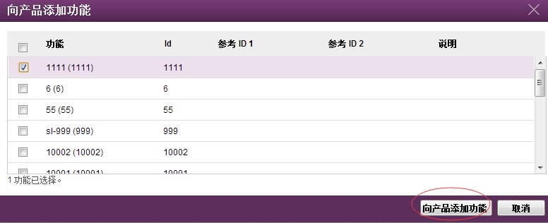 選上之前定義好的功能,并點擊“向產(chǎn)品添加功能”