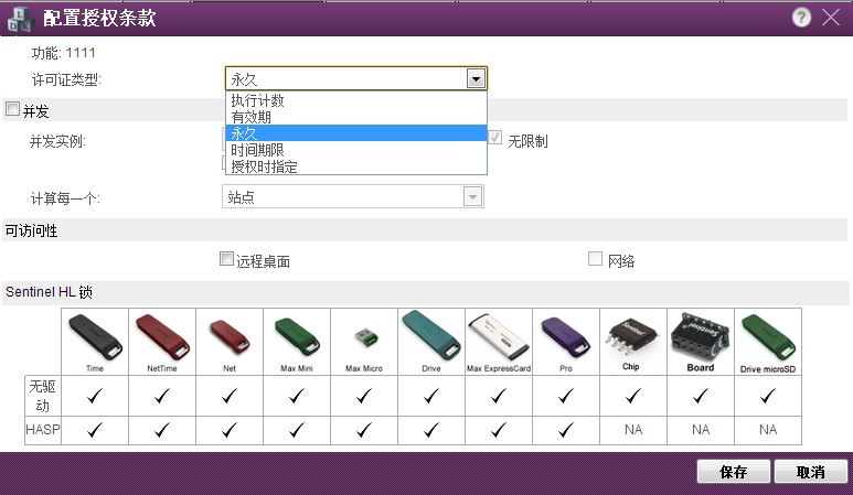 添加的功能默認(rèn)是永久,單機(jī)屬性,如果要設(shè)置軟件使用次數(shù)、時間、以及網(wǎng)絡(luò)并發(fā)用戶數(shù),就在添完功能后點“配置”。