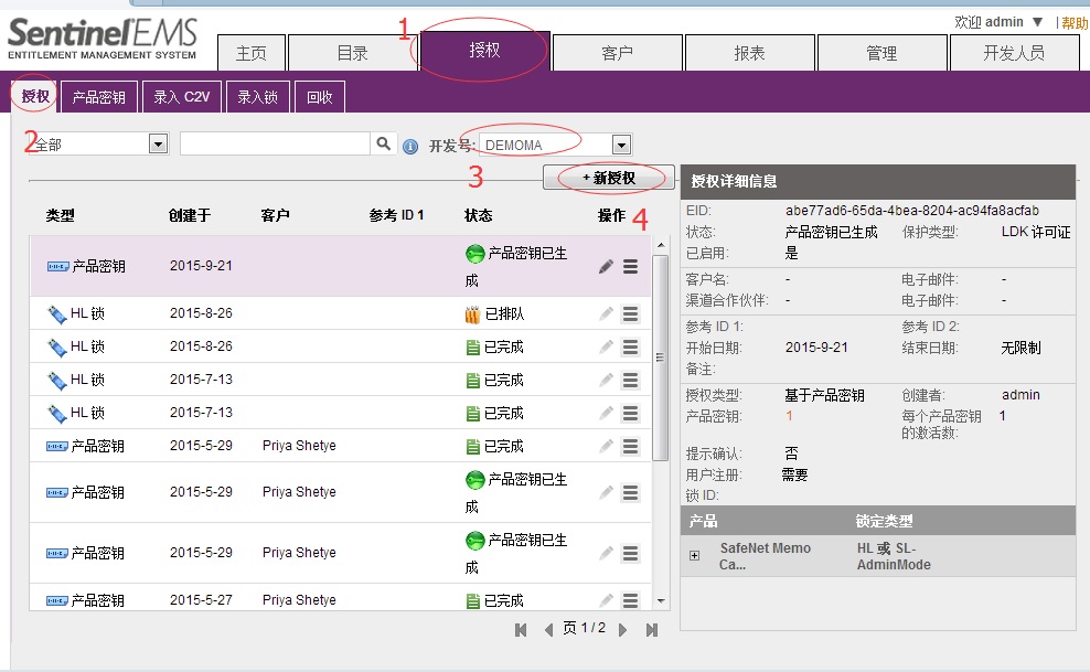 按圖中1、2、3、4步驟建一個新授權(quán)。