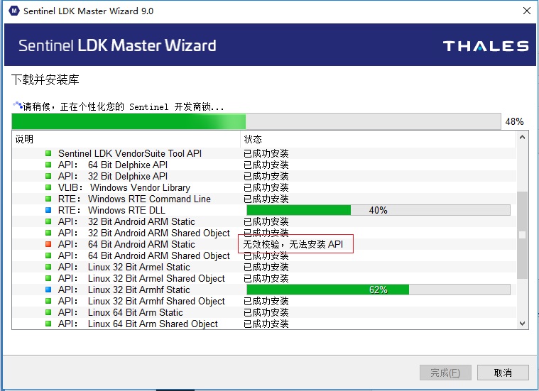 導入過程中如出現(xiàn)上圖這種“無效校驗”,整個開發(fā)庫都將下載失敗,請退出后重新導入。